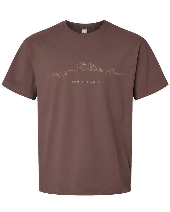 The detailed skyline artwork captures the majesty of the eternal city, while the cream-colored print creates a sophisticated contrast that works from gym to street.