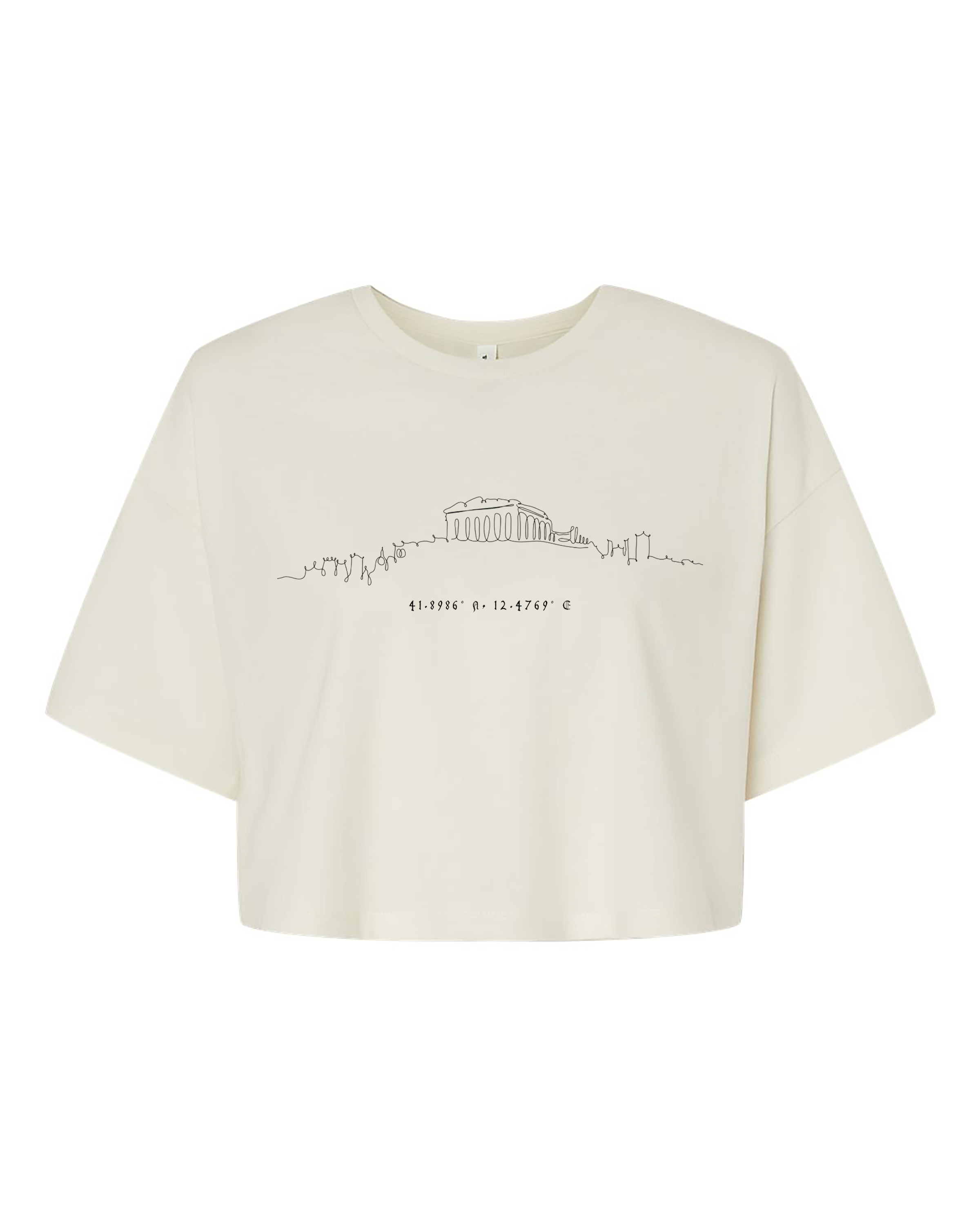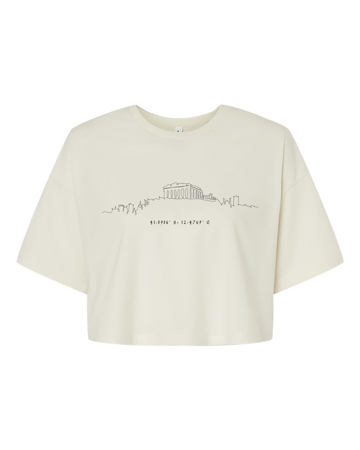 This vintage white piece features an intricate line-drawing of the Pantheon's classical silhouette and the city's exact coordinates (41.8986° N, 12.4769° E) - a subtle nod to where greatness was forged.